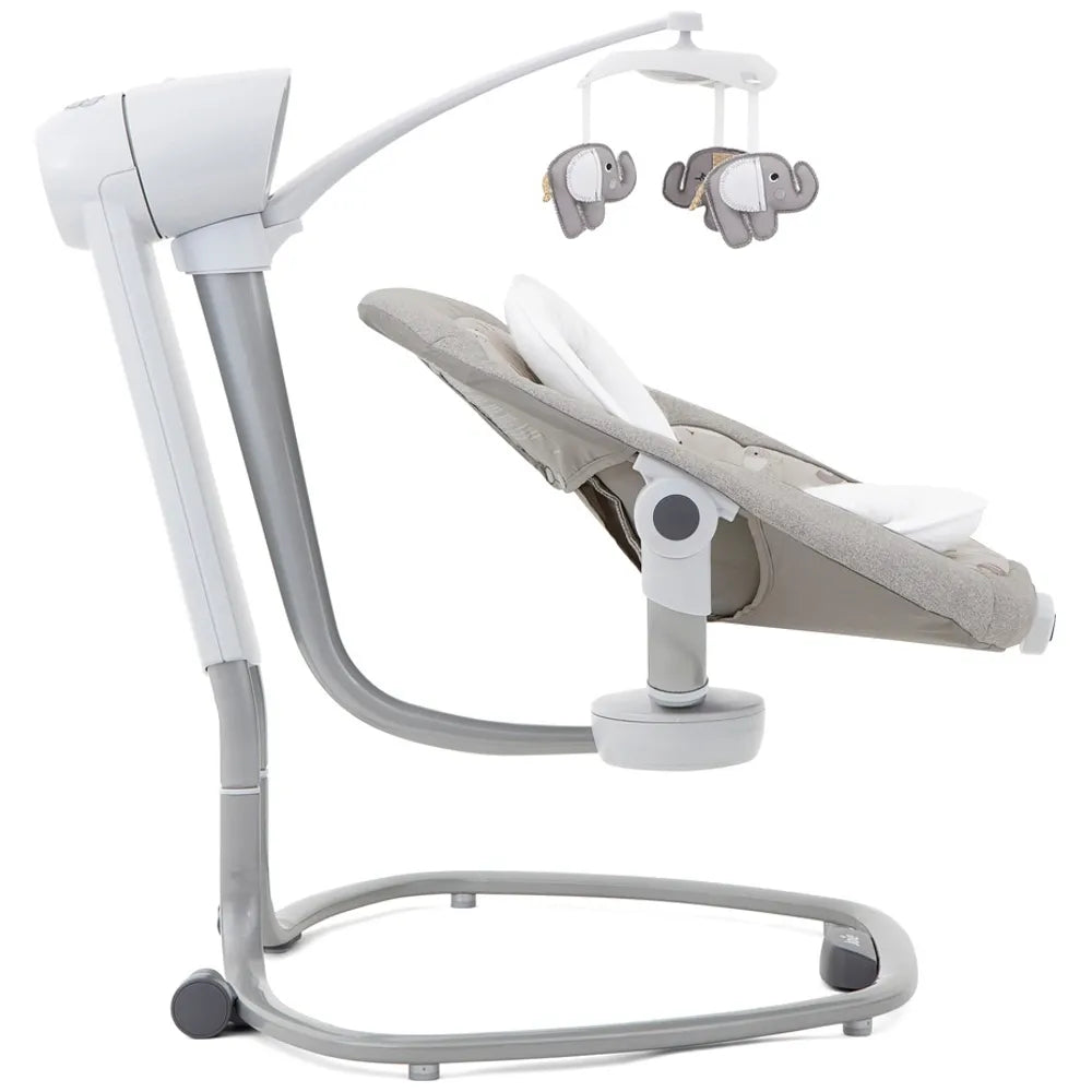Contents: 1x Joie Serina Swivel Baby Swing in Elephant Duo; 1x Infant Insert; 1x Mains Adaptor
